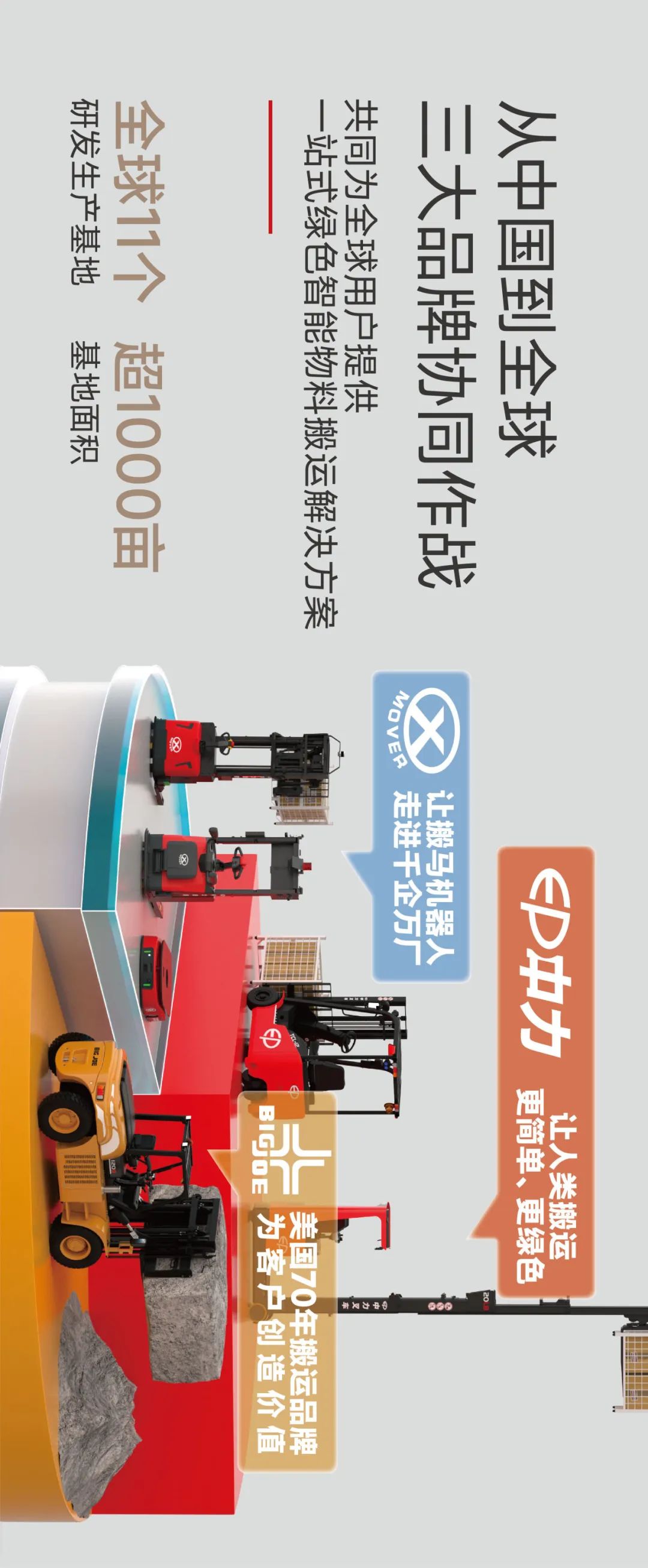 中力将以“解放人类劳动力”为使命,在实现从手动搬运到电动搬运的基础上,正全力推动从柴油叉车到锂电叉车的绿色革命,并且正在朝机器人搬运的方向大步前进,努力实现绿色搬运、智能搬运和数字搬运。