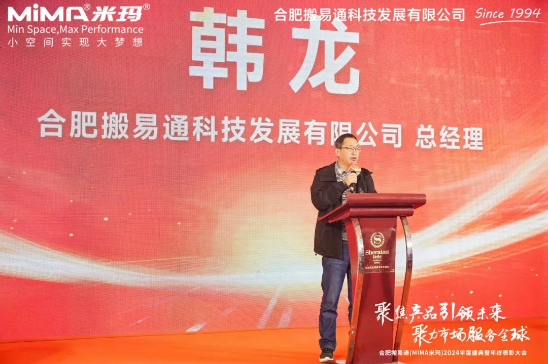 紧接着,总经理韩龙先生发表了精彩致辞。韩总对合肥搬易通(MiMA米玛)过去一年的卓越表现给予了高度肯定,他表示,合肥搬易通(MiMA米玛)始终坚持以客户为中心,以产品为驱动,不断推动技术创新与服务质量升级。正是凭借着这份坚守与执着,我们才在激烈的市场竞争中脱颖而出,收获了众多客户的信赖与认可。韩总强调,新的一年,我们将继续聚焦产品核心,深化技术研发,提升产品质量;同时,积极谋划市场布局,拓展全球业务版图,以更加开放的姿态拥抱世界,为全球各地的客户提供更加优质、高效的服务。