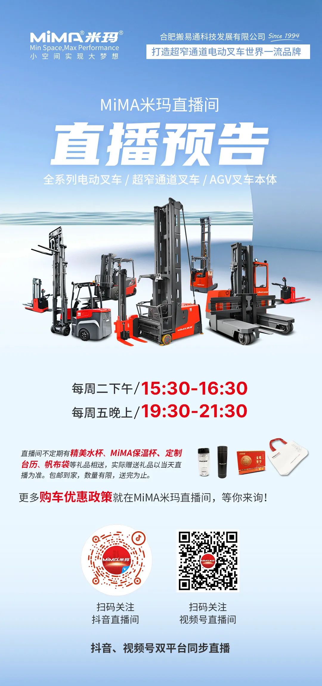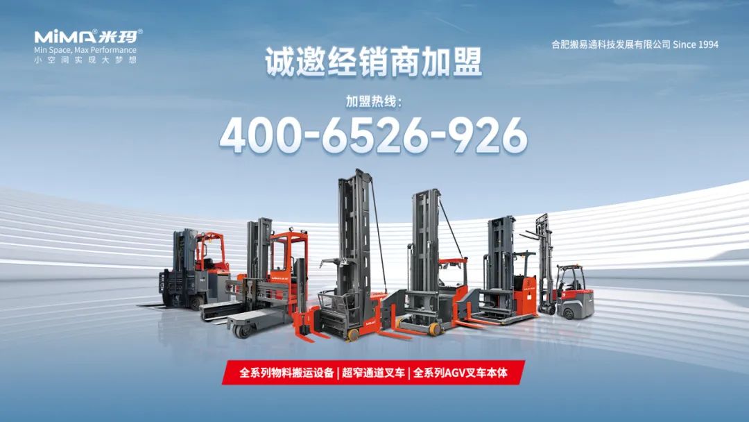 合肥搬易通(MiMA米玛)始创于1994年,是国内领先的内部物料解决方案供应商。公司占地面积7.2万平方米,员工人数超700人,拥有超100人的高素质研发团队,300余项国家技术专利,参与起草与制订6项国家标准,是安徽省首批国家级重点“专精特新”小巨人企业。公司致力于“打造超窄通道电动叉车世界一流品牌”,凭借先进的电动叉车研发技术、完善的产品体系和售后服务,已为成千上万的客户提供量身定制的物料搬运解决方案。公司还具备全系列专业AGV无人叉车本体从设计制造到装配调试的一站式服务能力,满足多样化的场景需求,以专业实力推动行业发展。