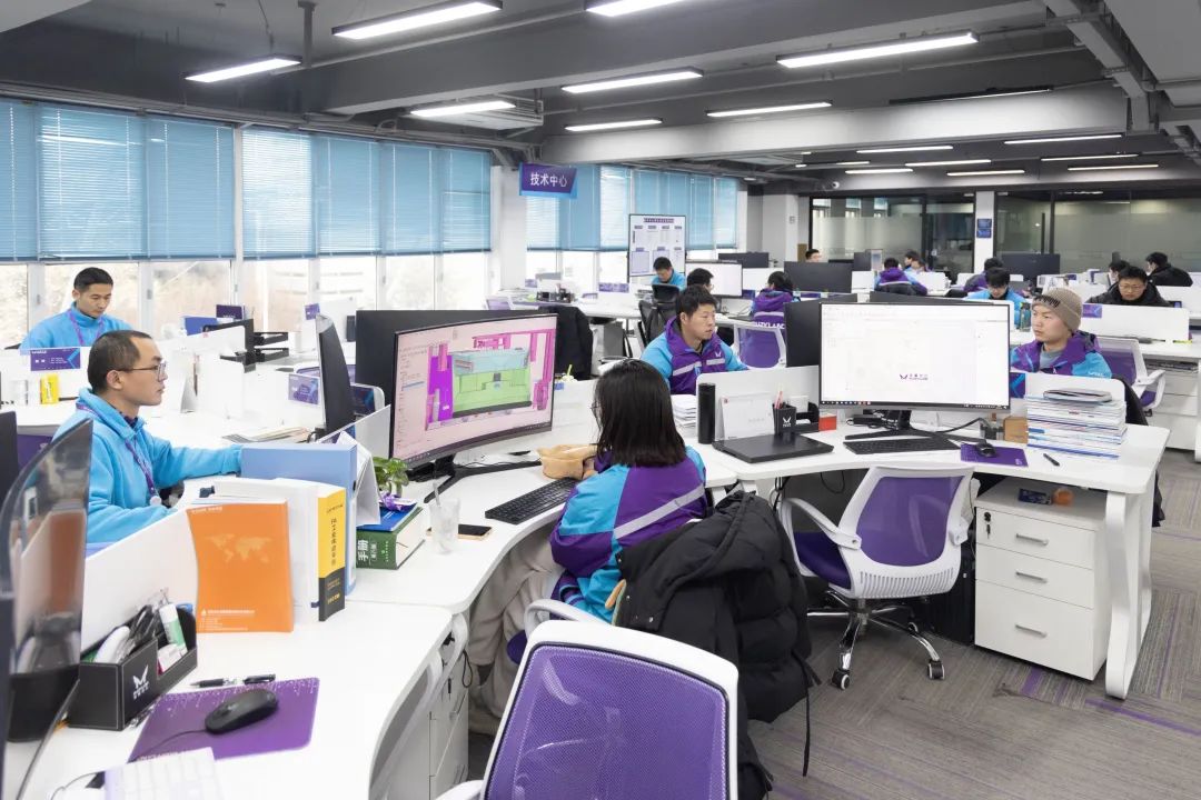 ▲法睿兰达二楼技术中心,身着企业文化服的研发人员正在工作。