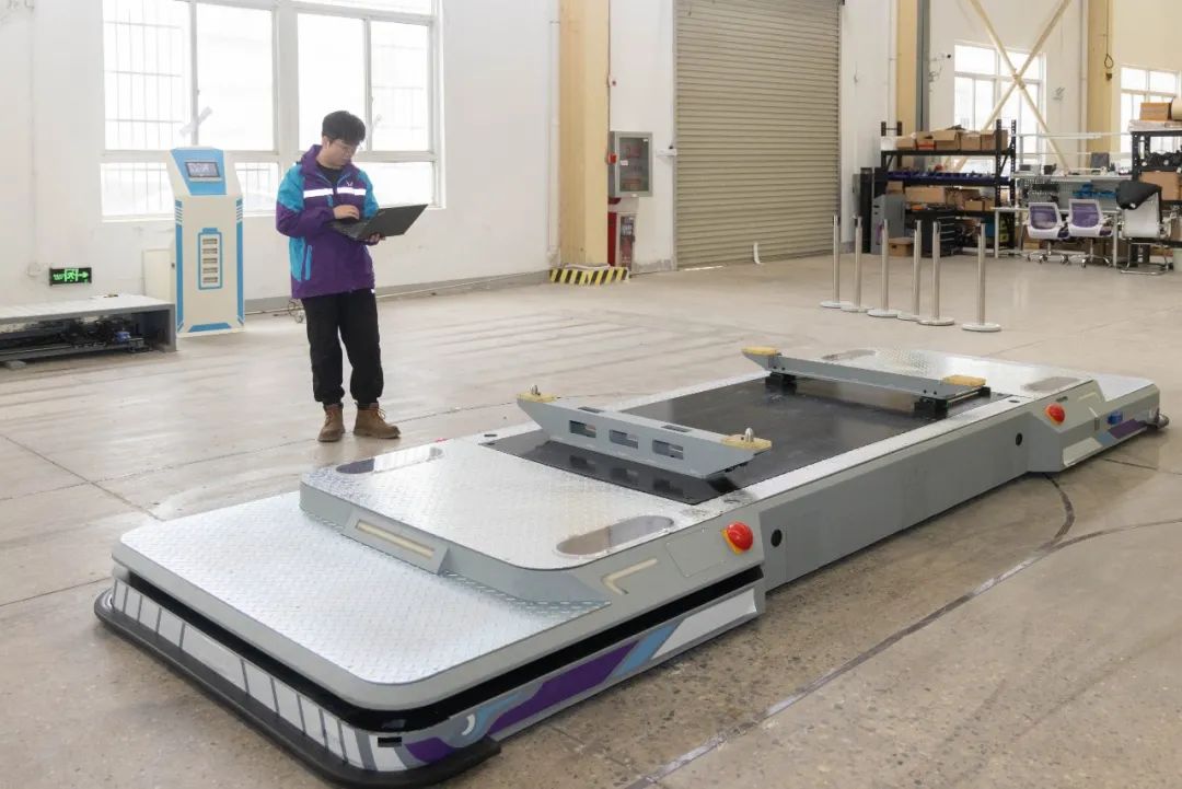 “这款名为‘鲲鹏’系列主线移动机器人,导航精度达到±5毫米。”周博士指着眼前一台长5米、宽1米的设备介绍,该产品通过模块化布局,可快速完成产品型号的切换、节拍、工位调整等,大幅提升生产准备速度,降低产线调整周期、成本,目前已批量发往某车企新能源工厂转型项目。