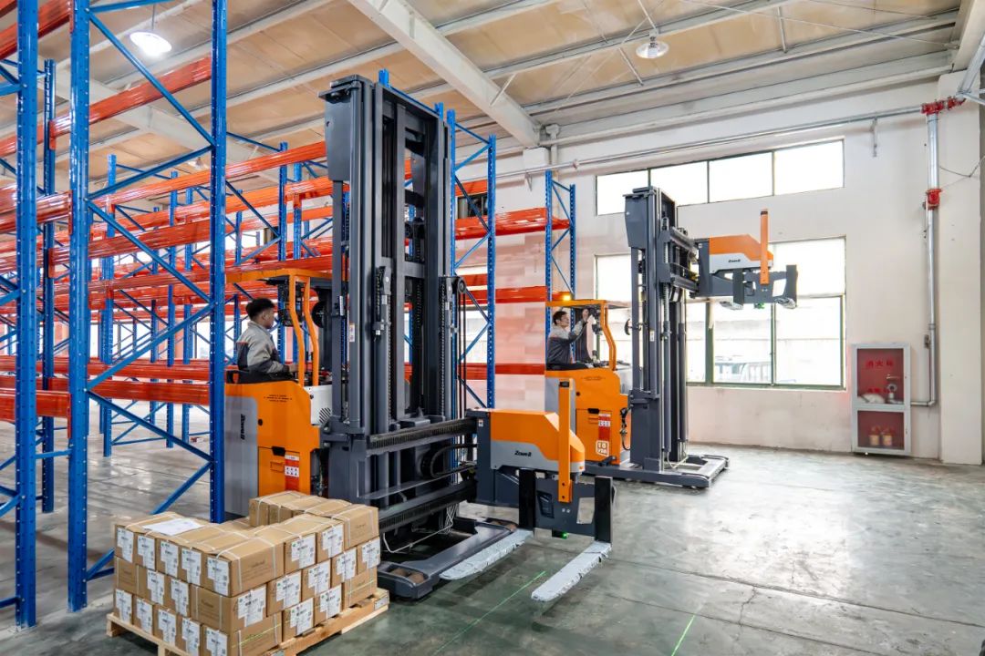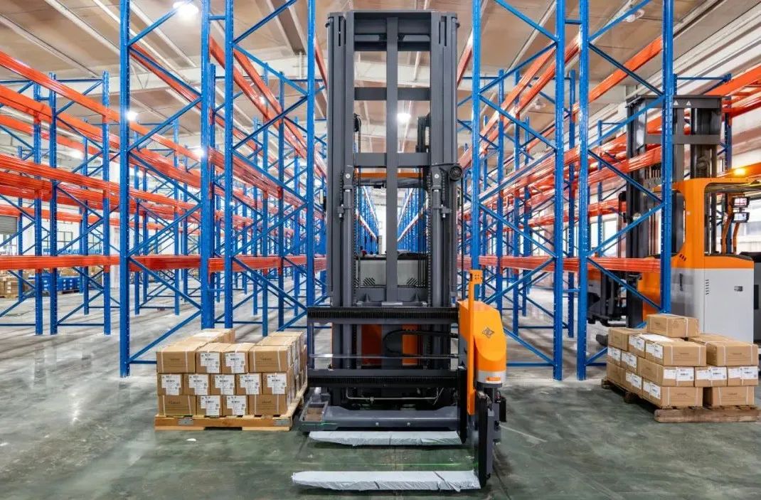 针对客户需求,结合现有仓库条件,卓一智能叉车为其提供两台人下行三向叉车搭配窄巷道货架的物流解决方案,具体方案及优势如下:
