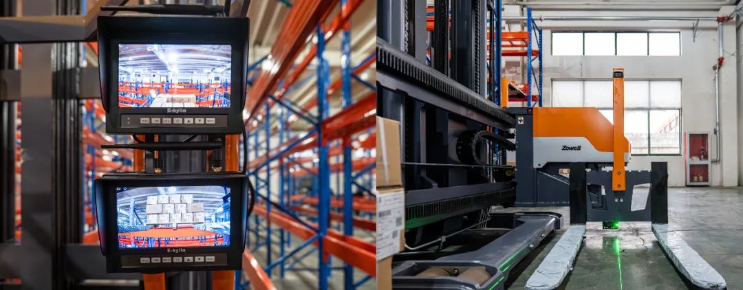 配备货叉监控摄像头+水平激光,叉车操作员可以通过货叉摄像头和水平激光线快速判断货叉高度、对准托盘位置,进一步提升货物存取的精准度。