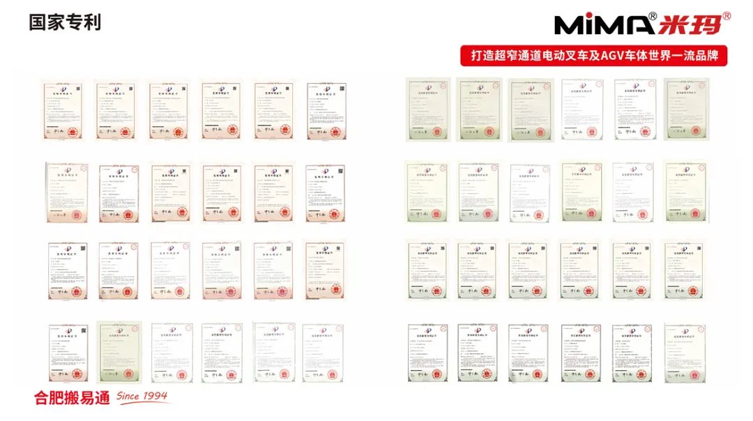 ▪合肥搬易通(MiMA 米玛)技术团队汇聚超140名专业研发人员,凭借深厚的技术底蕴与持续的创新实践,研发出一系列高性能电动叉车。公司现已拥有320余项国家技术专利,其中发明专利超120项,还参与起草制订了6项国家标准。