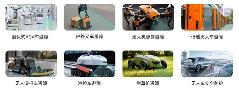 S10不仅能为低速无人车、无人叉车、无人机、割草机等设备提供稳定、高精度的远距离感知解决方案,还能拓展至更多创新应用场景: