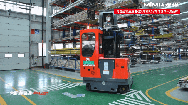 2.MQC25全向叉车,额定载重2.5吨,可搬运3-20米长物料,具备直行、侧行、原地回转等行驶模式。在木材、铝型材、门窗等长物料搬运领域应用广泛,可根据客户实际工况进行调距叉、货叉、超宽货叉架定制等。