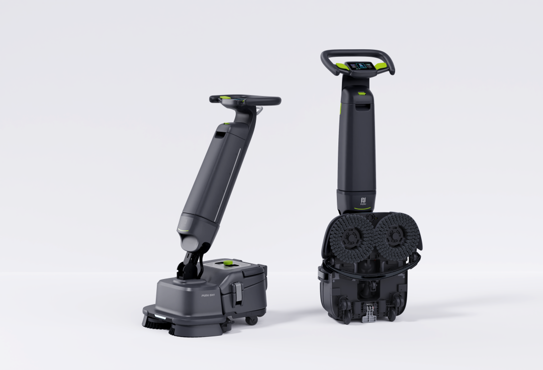 SH1专为复杂场景打造,以“极限清洁能力”为核心竞争力。其搭载高功率盘刷电机与吸风电机,可深入清洁低至10mm的矮缝与40mm的狭窄空间,轻松应对餐饮后厨、商超货架区等场景的顽固污渍。独特的脚踏式转场底盘设计,使设备姿态切换效率提升50%,用户仅需“一提一踩一拖”即可快速转场,大幅减少弯腰操作,适配人流密集环境的高频清洁需求。