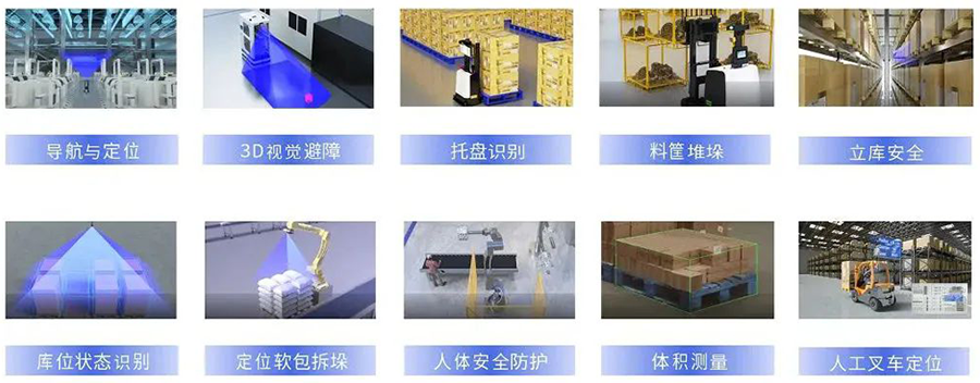 与多家行业领军企业达成战略合作,拓展视觉技术在仓储物流自动化领域的多场景应用,包括人工叉车定位、库位状态识别、人体安全防护、立库安全保障与货物体积测量等;
