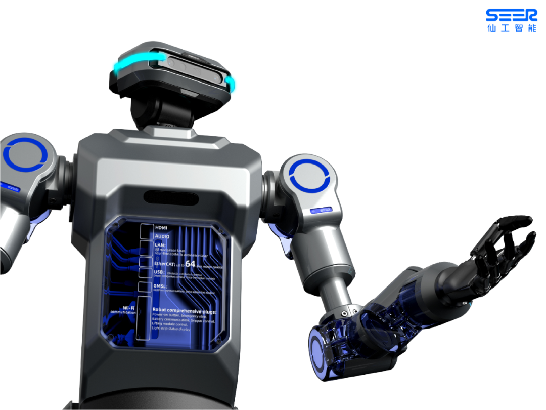 仙工智能最新研发的 SRC-5000 是全球首款一体化具身智能控制器,通过异构的方式集成专用的 AI 芯片及协处理器,同时实现了高稳定、高实时和高性能,拥有行业领先的集成度,率先实现 Whole-body Control(全身控制),突破手-眼-脚协同控制技术瓶颈,构建了完整的「大脑+小脑」感知决策体系。基于 SRC-5000,我们成功将视觉语义地图(VLM)、端到端等多模态模型同时应用于智能叉车和轮式人形机器人,并获得了一定程度的泛化能力提升。