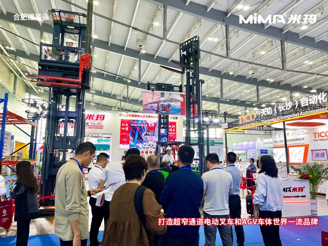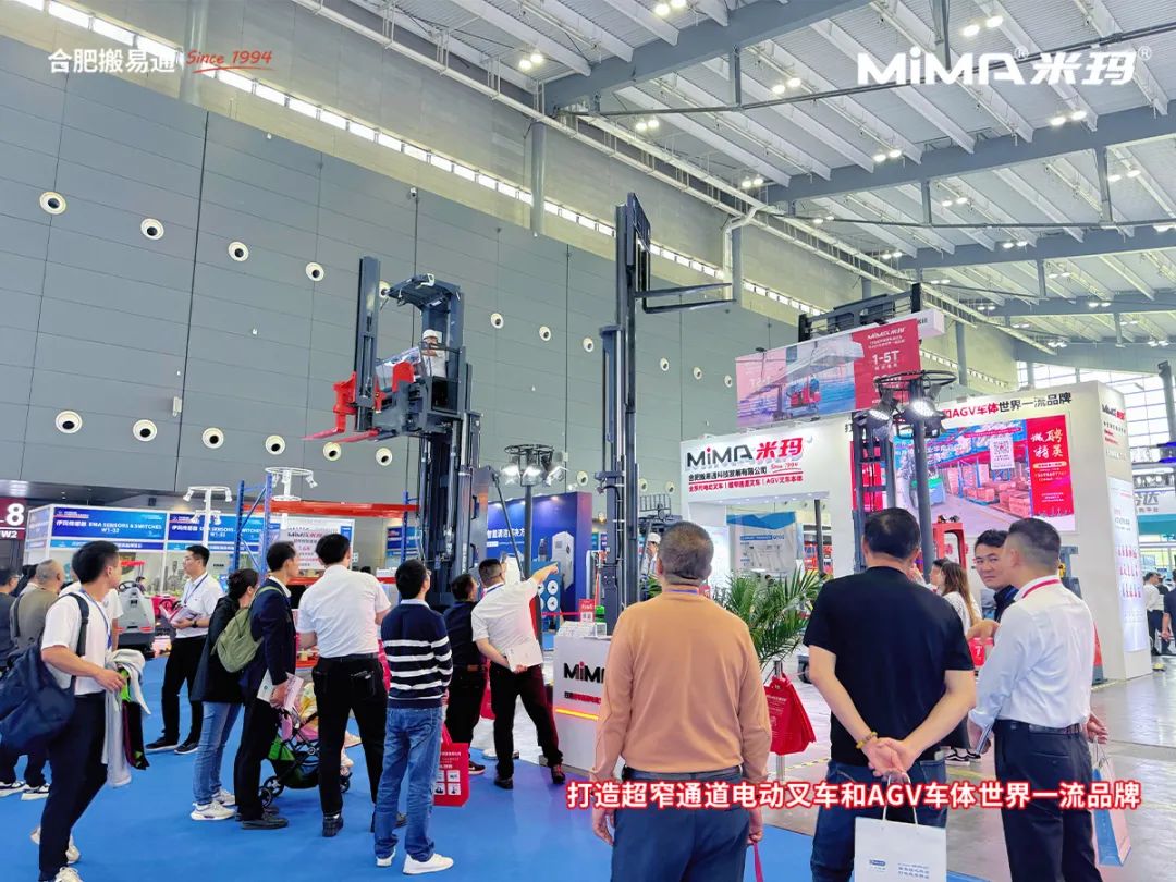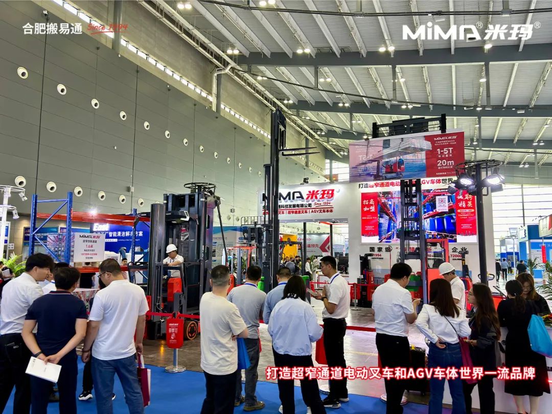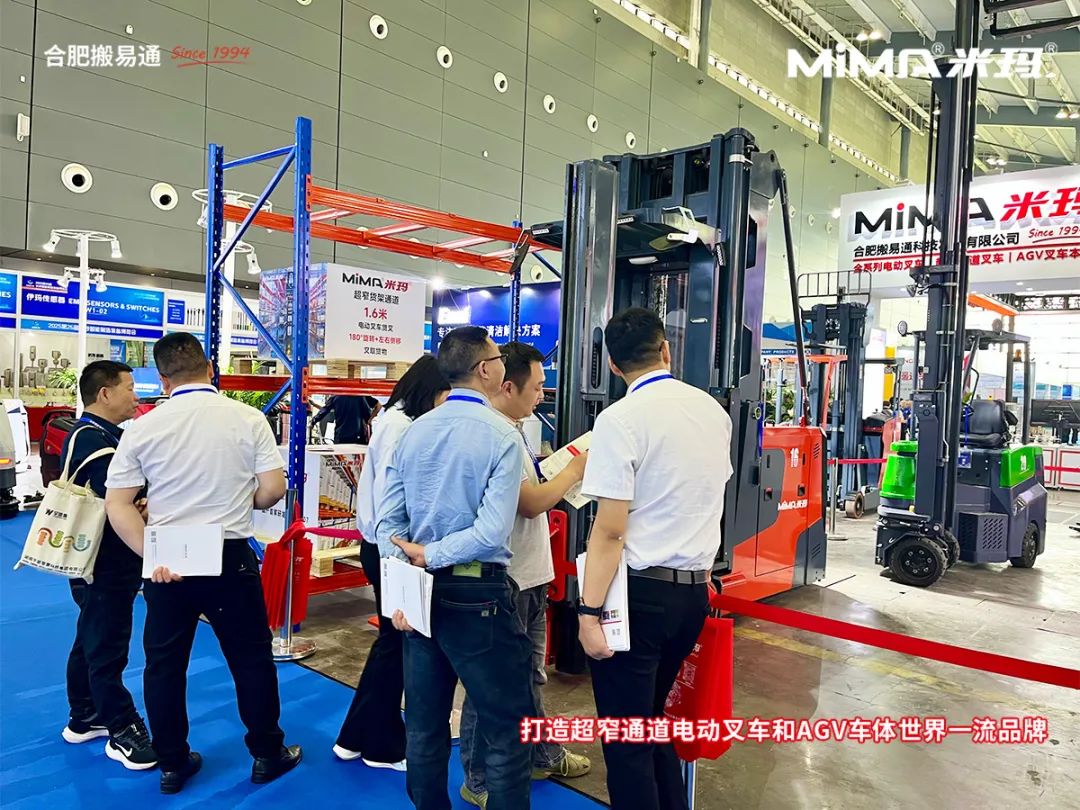 本次展会上,合肥搬易通(MiMA米玛)重点展示了多款针对高密度仓储和智能化物流的解决方案,包括超窄通道系列叉车、窄通道系列叉车及AGV无人叉车本体系列产品。