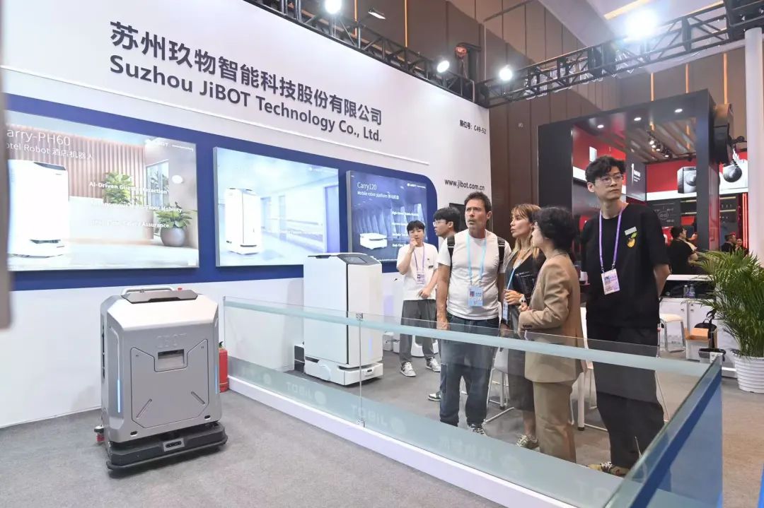 苏州玖物智能科技股份有限公司是全球领先的产业机器人供应商,专注于研发、制造、销售服务产业机器人和激光雷达,率先实现了同一场景下超600台移动机器人协同生产的先进制造业应用,公司当前在光伏行业机器人全球排名第一,SLAM移动机器人市场份额稳居全球前三。在玖物智能展位,创新酷炫的移动机器人外型和前沿技术应用吸引了来自全球各地的新老采购商前来咨询,参展商和采购商在其乐融融的交流洽谈中搭建起合作的贸易之桥。