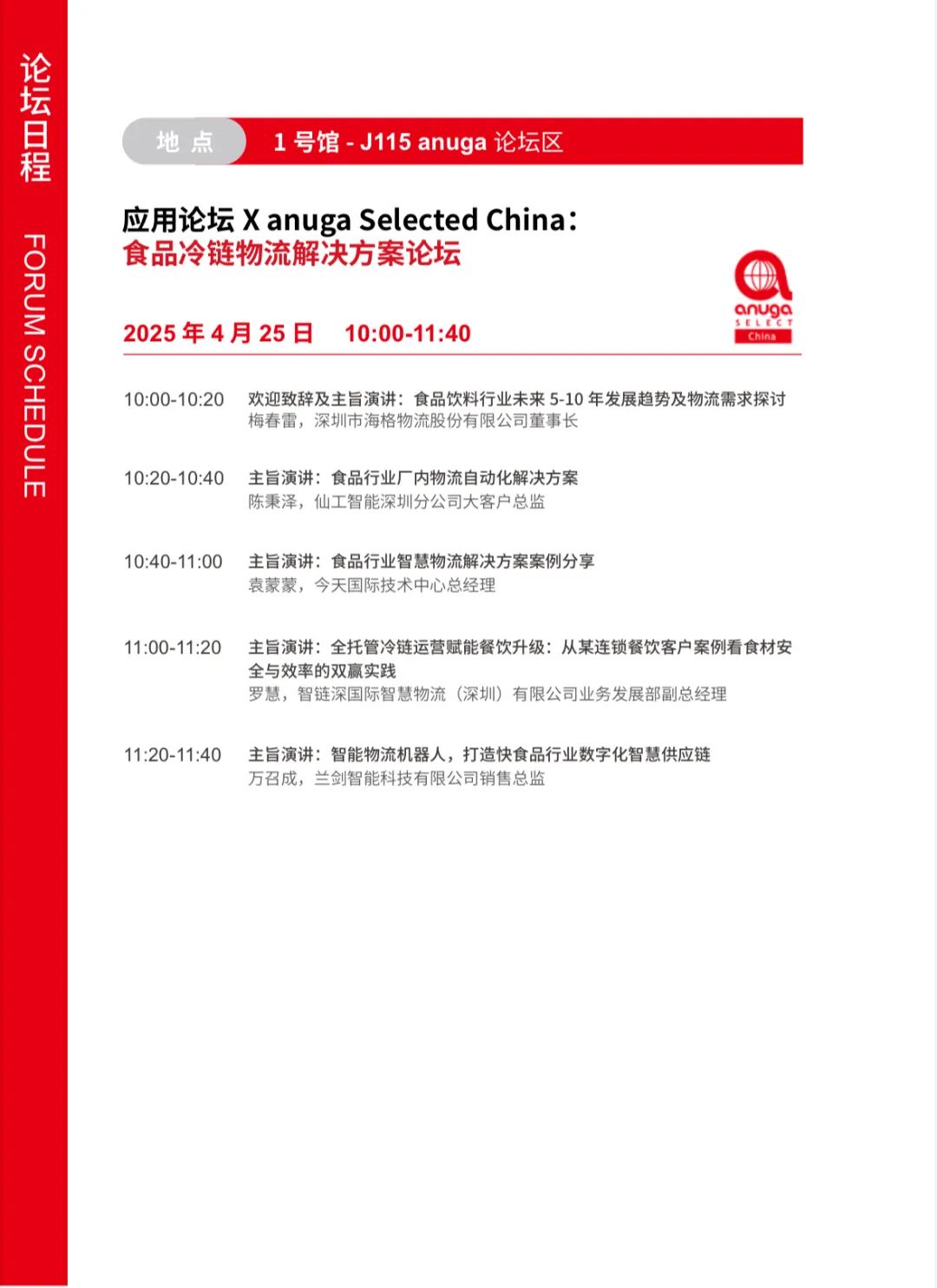 同时将携手内部物流最高效的应用行业展即世界食品(深圳)博览会(Anuga Select China)2025举办食品饮料供应链、冷链内部物流解决方案论坛,敬请期待。