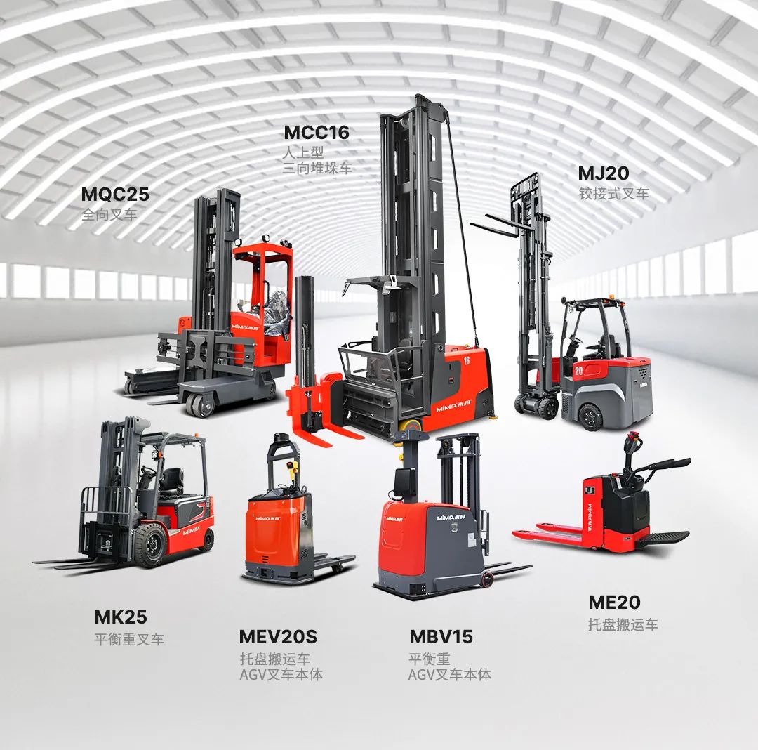 二十多年不断进取, MIMA 品牌以公司强大的科研创新团队为依托,以“安全、耐用、舒适、低碳(环保)”为设计理念,为客户提供500KG —100000KG应用解决方案、仓储设备及 相关服务。 通过不断的技术创新和专利积累,现在我们的产品已涉及12大类50多个品种,如电动托盘车搬运车、托盘堆垛车、前移式叉车、平衡重式叉车、牵引拖车、拣选车、窄巷道叉车、四向叉车、侧面叉车和非常物流设备、AGV、无人巷道堆垛机等等。产品广泛 应用于医药、食品、化工、电子、机械、家具、物流等各个行业。