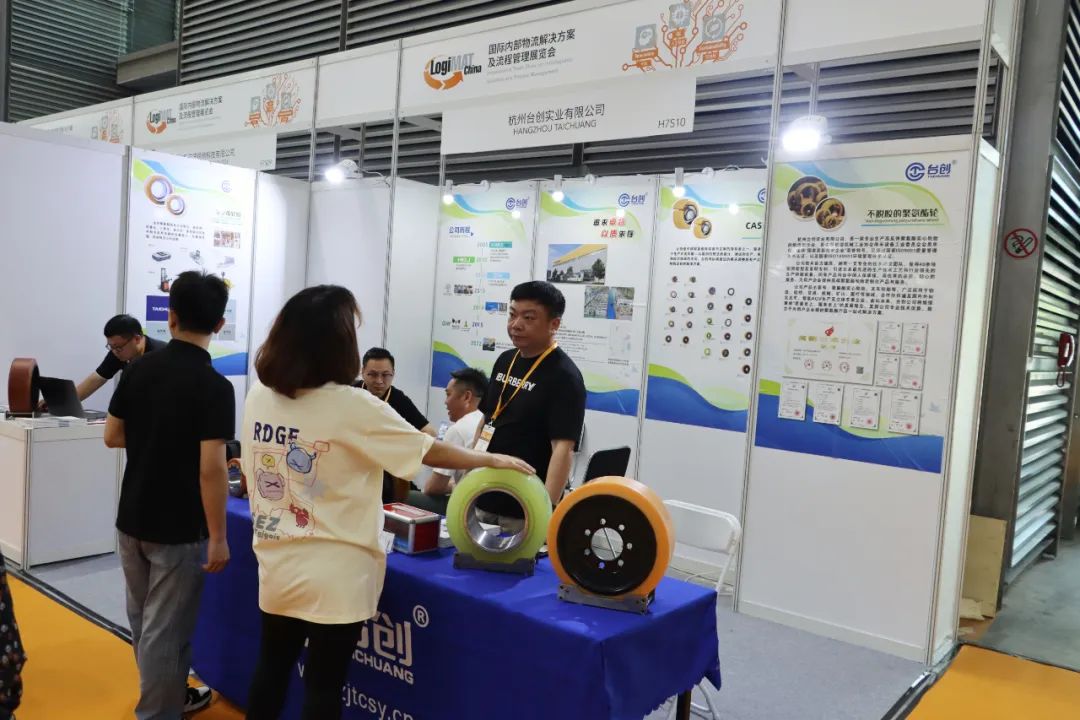 10.台创作为高端聚氨酯实心轮胎的领先制造商,展示了其最新的高反弹聚氨酯实心轮胎系列产品,涵盖叉车轮胎、AGV驱动轮、自动化滚轮及立体停车库专用滚轮等应用领域。台创凭借日本先进工艺和自主研发技术,重点推介了 “不脱胶”聚氨酯滚轮,突显其在 耐磨性、高承载、免维护 等方面的优势,适用于物流仓储、智能制造等场景。