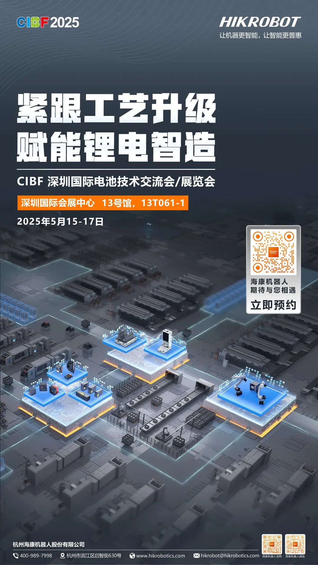 海康机器人将携创新产品与方案亮相2025中国国际电池技术交流会/展览会(CIBF 2025)与广州国际物流装备与技术展览会(LET 2025),深度展示智能制造在锂电、物流行业的新突破。
