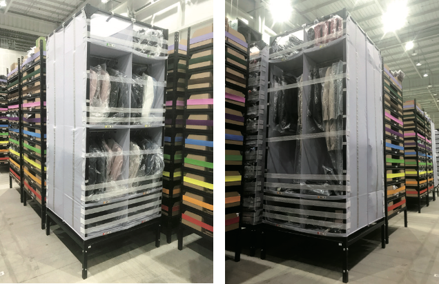 这个项目的挑战在于:SKU种类繁杂、商品相似度高、传统货架无法满足密集高效存储。牧星为此开发了多个定制化货架方案,包括: