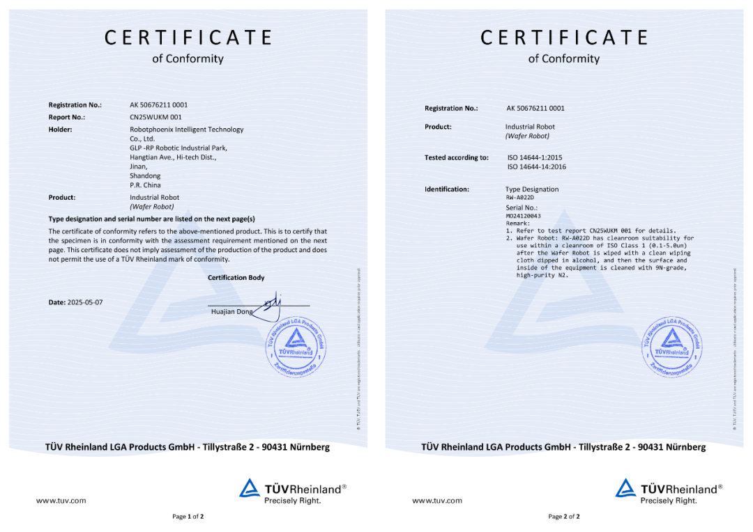 在科技飞速发展的今天,半导体行业作为现代科技的基石,其每一次突破都备受瞩目。近日,翼菲自主研发的大气晶圆机器人成功荣获TUV洁净等级Class 1认证,这一里程碑式的成就,不仅为公司的自身发展注入了强大动力,更为整个半导体行业的进步树立了新标杆。