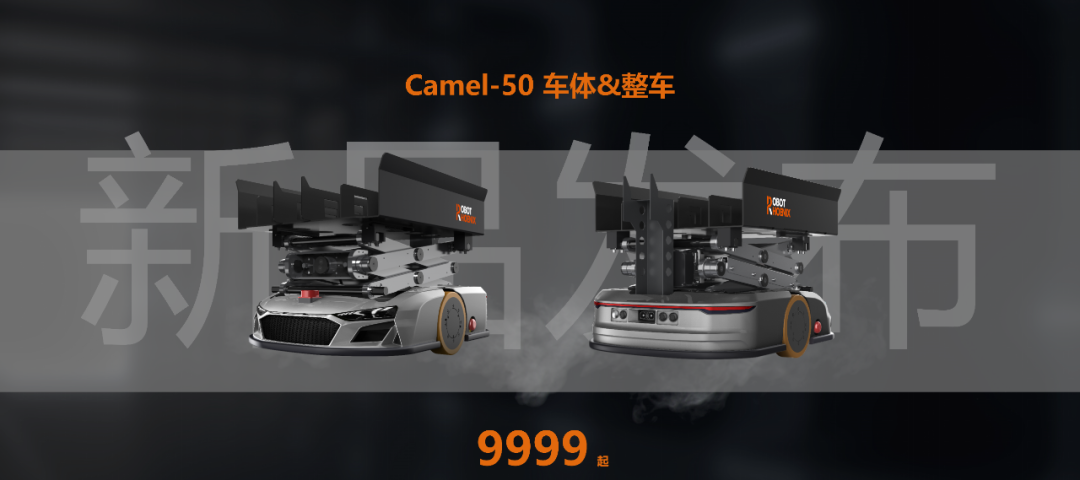 Camel50料箱搬运机器人专为解决去年发布的飞箱系统(AirBot)对料箱车的需求而研发,旨在为客户实现飞箱方案的快速搭建。运行速度可达4m/s,并在4s内完成举升。