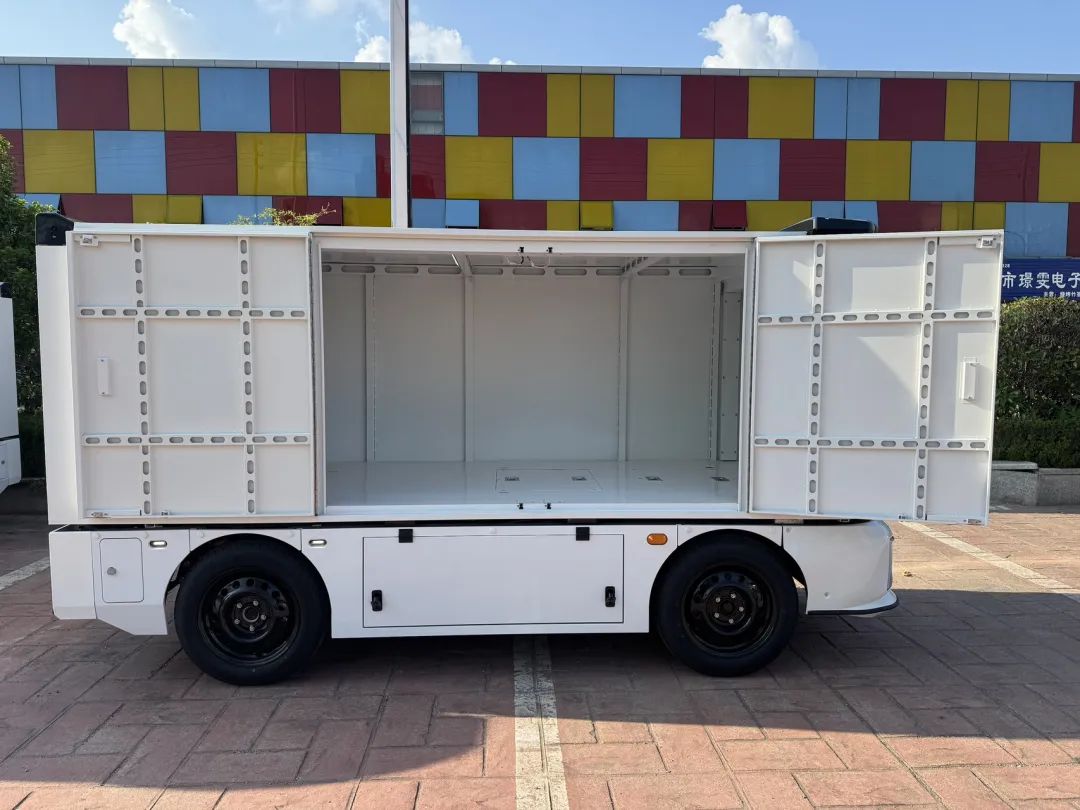 超大装载力:“换熊-P5”具备5m³装载容积,可一次性容纳800件包裹,侧面双开门+尾部单开门的设计可实现高效装卸。