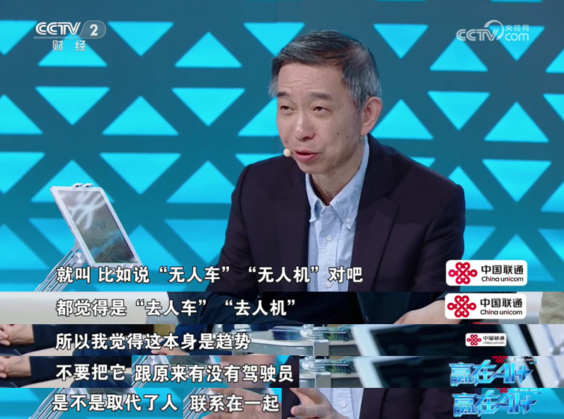 王坚院士针对“无人驾驶”也发表了自己的观点:“我觉着名字误导了大家,比如说‘无人车’,大家为什么有点恐慌呢,都觉着是‘去人车’,我觉着这本身是趋势,不要把它跟原来有没有驾驶员,是不是取代了人,联系在一起,这是我的一个观点。”