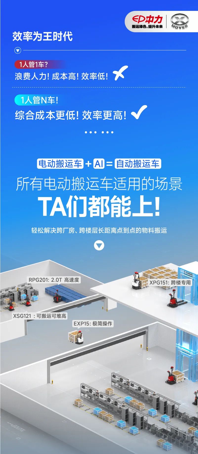 中力将以“解放人类劳动力”为使命,在实现从手动搬运到电动搬运的基础上,正全力推动从柴油叉车到锂电叉车的绿色革命,并且正在朝机器人搬运的方向大步前进,努力实现绿色搬运、智能搬运和数字搬运。
