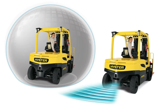 牵引警报(可选):自动逐渐减慢叉车速度,类似于操作员松开加速器的效果,提醒操作员采取制动或转向等措施以避免碰撞。