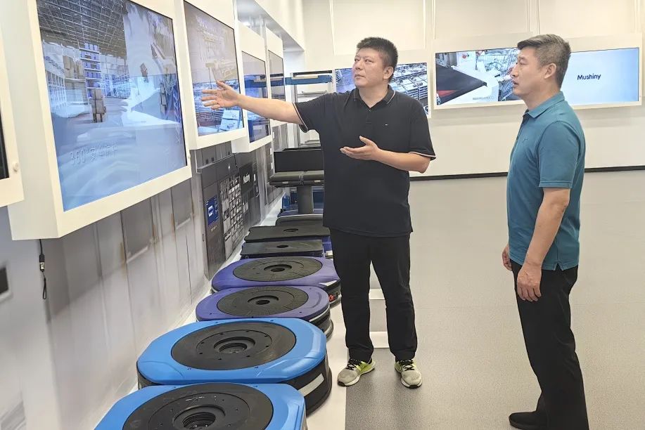 随后,郭东晓一行调研灵智科技工厂,重点考察了3D视觉装车系统的实际作业流程。灵智科技总经理姚建平介绍,企业拥有200余项专利,凭借独有视觉算法与机械控制技术打造的智能装车方案在国内外适用车型广度、运行台时效率上均处于行业龙头地位。他表示,从方案设计到设备落地,灵智科技能为客户提供全流程的智能化仓储发运系统,解决产品装车难题,显著提升物流装车效率。