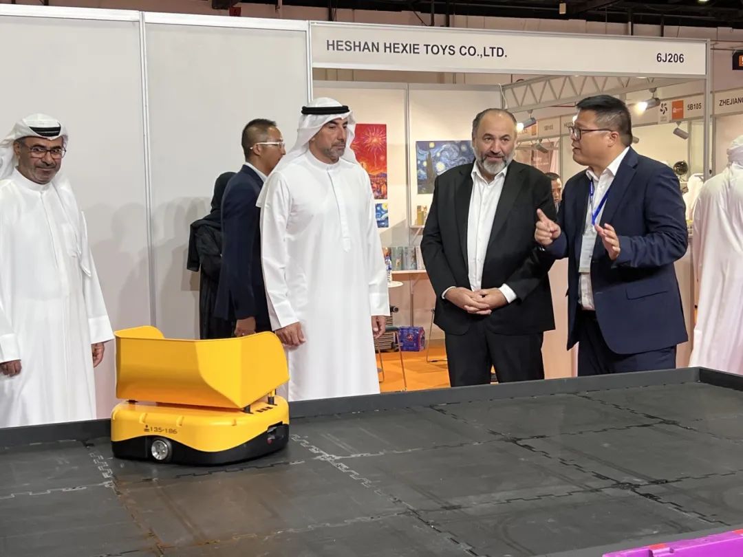 而来自迪拜当地的重要嘉宾同样阵容强大,迪拜世贸中心高级副总裁Mahir Julfar先生,以其丰富的国际贸易经验,对立镖机器人在中东市场的发展机遇给予了肯定;迪拜Texmas纺织商人协会秘书长Sachanand Manwani先生、联席秘书长Kishore Sawlani先生,从纺织行业物流痛点出发,与我们探讨了立镖机器人的应用解决方案;迪拜非洲商会CEO Maria Foster女士,也从跨区域合作的视角,为立镖机器人开拓非洲市场提供了新的思路。
