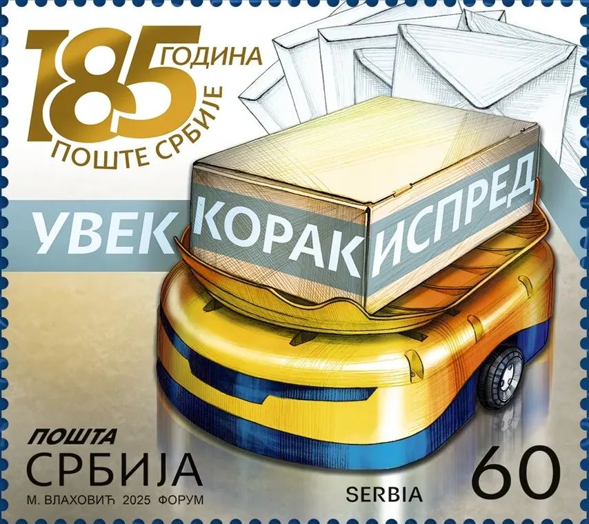 塞尔维亚邮政在贝尔格莱德部署了153台立镖机器人,这是巴尔干地区最大规模的邮政分拣机器人部署。甚至被印在了塞尔维亚邮政 185 周年纪念邮票上。
