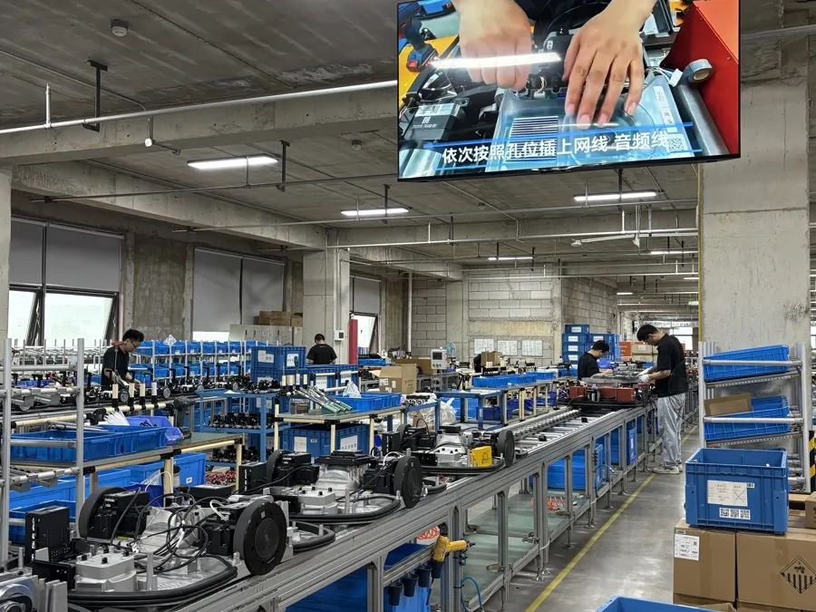 乘坐货梯到2楼,就来到了快仓潜伏式机器人组装产线。通过机器人、可移动货架及一系列硬件、软件系统,在补货、上架、拣选、库内作业等场景,可为客户减少60%-80%的人工。
