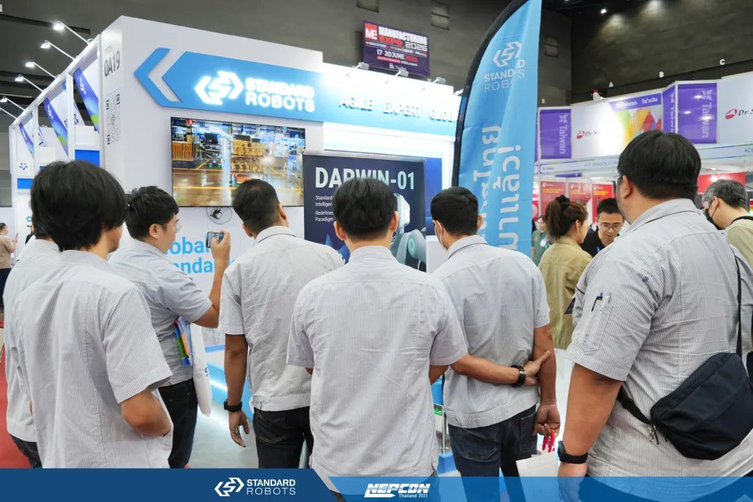 除解决方案外,斯坦德在本次泰国电子展上向东南亚客户展示了其工业具身智能机器人DARWIN的最新情报。现场配备技术专家进行深度讲解,吸引了大量专业观众驻足咨询,展现了斯坦德在工业具身智能技术上的领先探索。