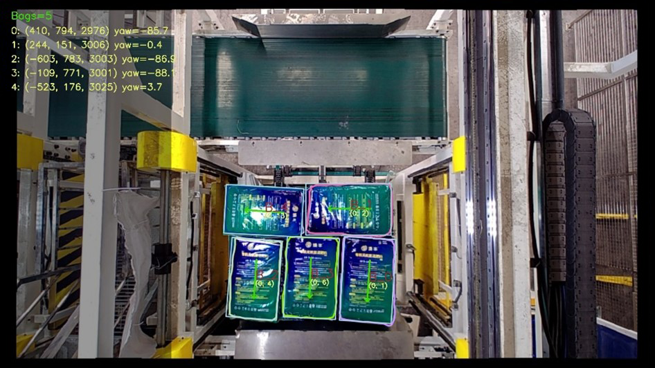 图1 人体干扰下迈尔微视软包拆垛视觉算法2.0的表现