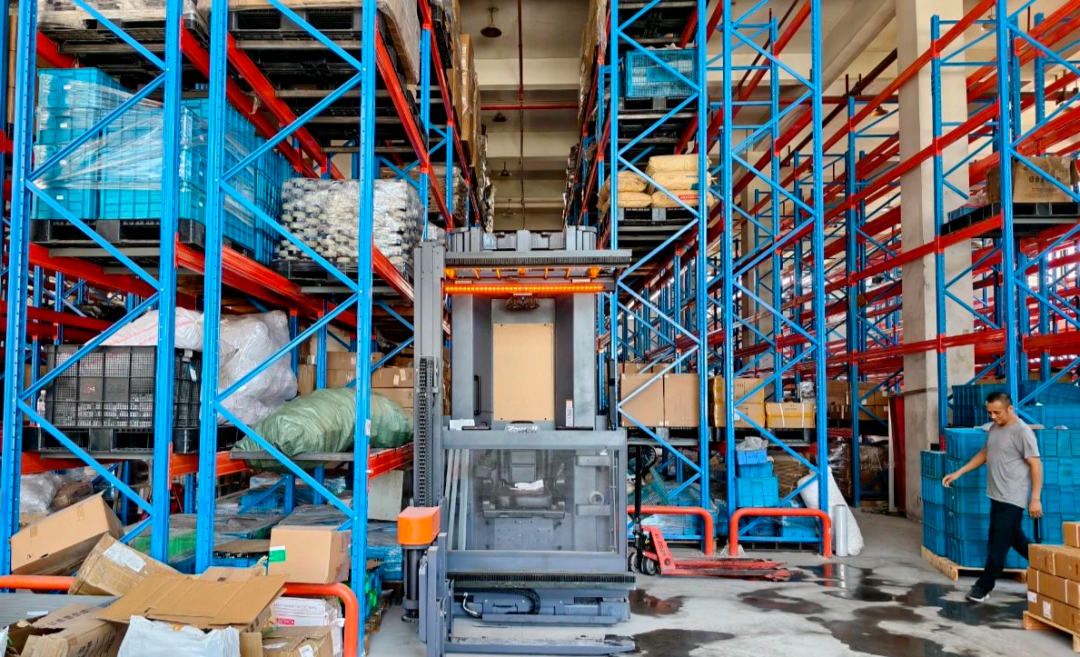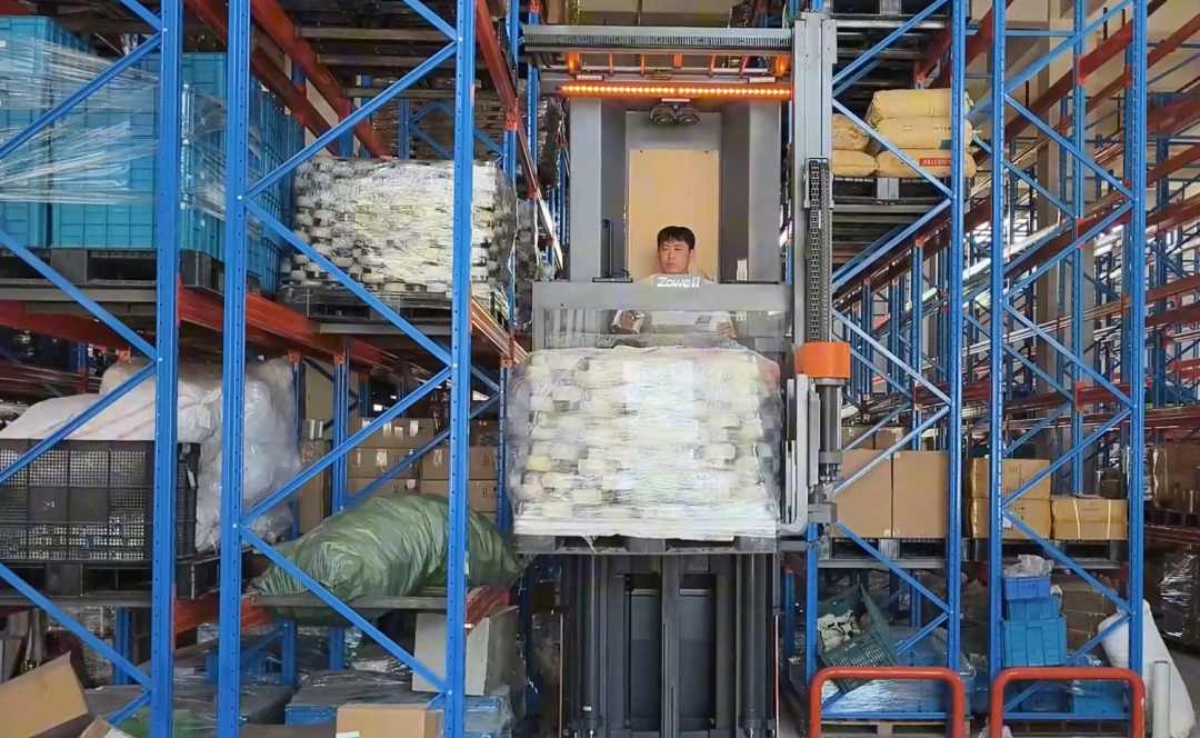 2.人上行三向叉车最大载荷1.6吨、高空载荷能力强,具备行驶中同步升降功能,无需更换设备即可在任意高度完成堆垛和拣选两项任务,减少了人力成本和车辆调度的时间成本,拣选效率大幅提高,更快满足客户多样化的订单出库需求。