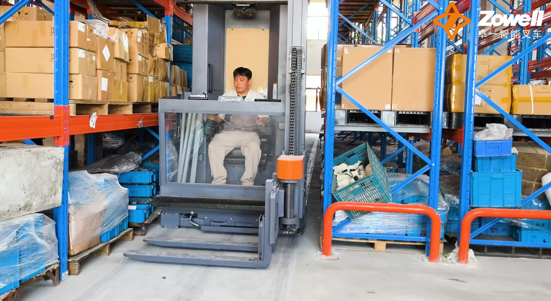 凭借助力制造业仓储物流升级的丰富项目经验,卓一智能叉车针对上述挑战,为客户推荐了人上行三向叉车物流方案,为客户的新仓库规划了窄巷道货架,通过高位密集存储设备与窄巷道货架的结合,有效缓解客户的仓储压力,也为企业的业务扩展预留了充足的发展空间。