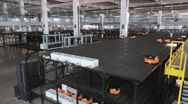 独创双层钢结构与高密度料箱系统布局,充分利用垂直空间,显著单位面积存储能力,机器人灵活穿梭,上下联动,高效完成货料分拣与转运。