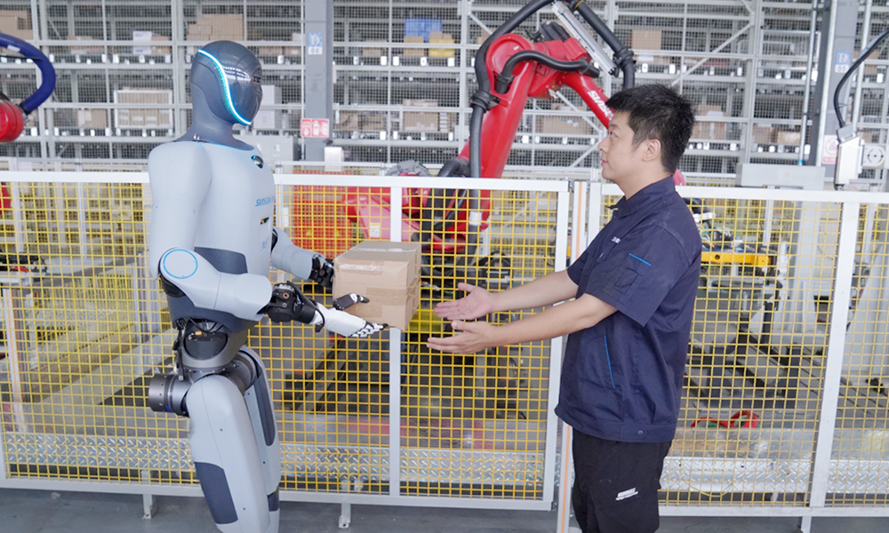 (图)在生产车间,“松行”双足人形机器人准确领会用户意图,自主规划最佳作业方案,可连贯完成跨场景任务