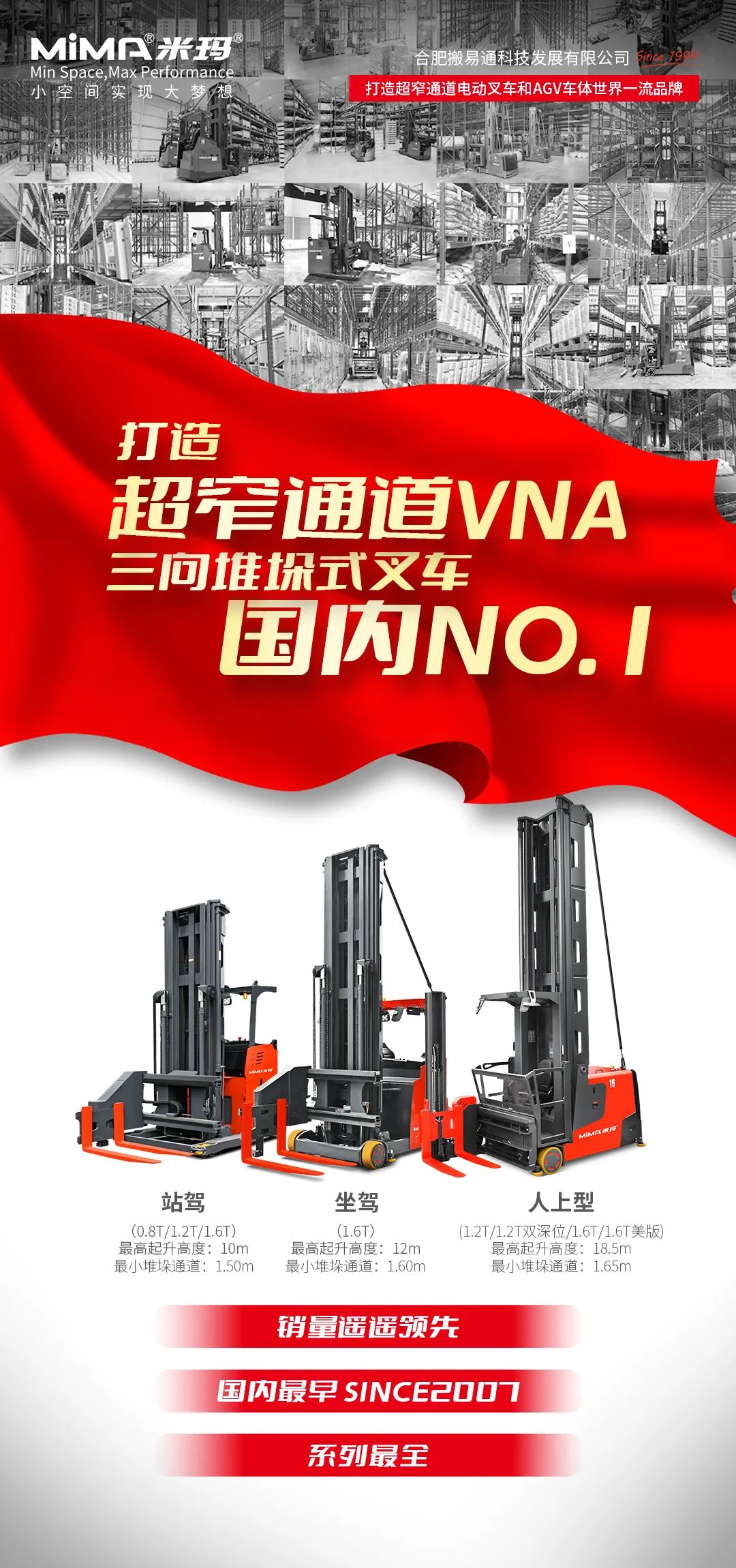 合肥搬易通(MiMA米玛)是国产品牌中首家设计研发并批量销售超窄通道三向堆垛车的企业,也是国内取证最早,应用案例最多的企业之一。2023年,成为《中华人民共和国机械行业标准-三向堆垛式叉车》标准参编单位,拥有三向堆垛式叉车相关技术专利40余项。同时,凭借超3000台的交付业绩和不断拓展的海内外市场,MiMA已成为超窄通道叉车领域一流企业,拥有丰富的实践经验,无论是极端环境作业需求,还是客户对空间利用、安全保障的高要求,MiMA都能通过专业定制化方案助力企业实现仓储升级。