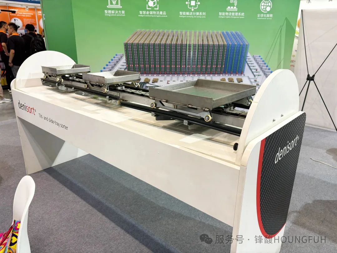 锋馥的瑞士合作伙伴Denipro公司在锋馥展台展出 Denisort翻板分拣系统。