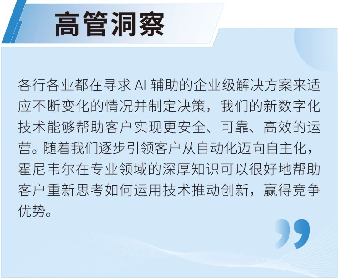 近日,霍尼韦尔宣布推出人工智能(AI)辅助的新数字化技术,以加快工业从自动化向自主化转型。