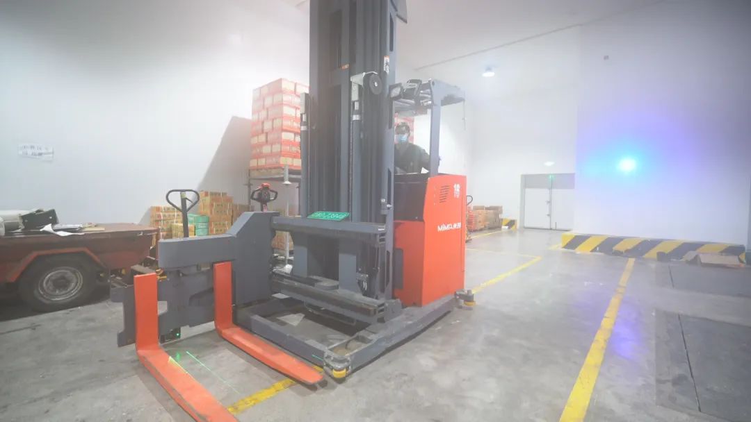 在众多车型中,MiMA窄通道系列车型凭借其卓越的空间优化设计及高度灵活的作业能力,脱颖而出成为行业瞩目的焦点。尤为值得一提的是,该系列车型针对冷链物流的特殊需求,提供了深度定制化的冷库专用改造方案。改造措施涵盖多个关键技术领域:采用具备优异低温适应性的液压系统,确保在极寒条件下仍能保持稳定运行;配备防冷凝电路保护装置,有效防止低温引起的电路故障;加装专为冷库环境设计的防滑轮胎,增强在湿滑地面的抓地力与操控性;同时,对电池温控管理系统进行优化升级,确保低温环境下电池性能的稳定输出。这一系列技术创新,系统性地攻克了传统搬运设备在低温作业中普遍面临的性能衰减、可靠性下降等难题,为冷链物流行业提供了更为高效、可靠的解决方案。