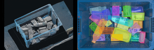 深度融合 2D 语义与 3D 几何网络,大幅提升了透明或反光等复杂材质物体的深度估计精度,以及外观相似物体的分割准确性。同时实现检测、分割、深度估计等多任务,降低推理延迟。