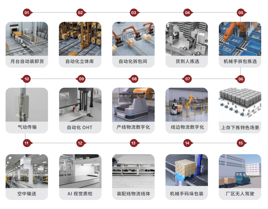 AMR、月台卸货、全自动OHT、空中输送与Al智能体数字孪生深度融合。