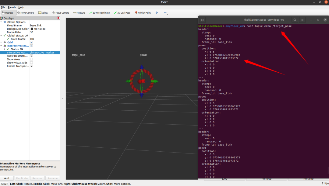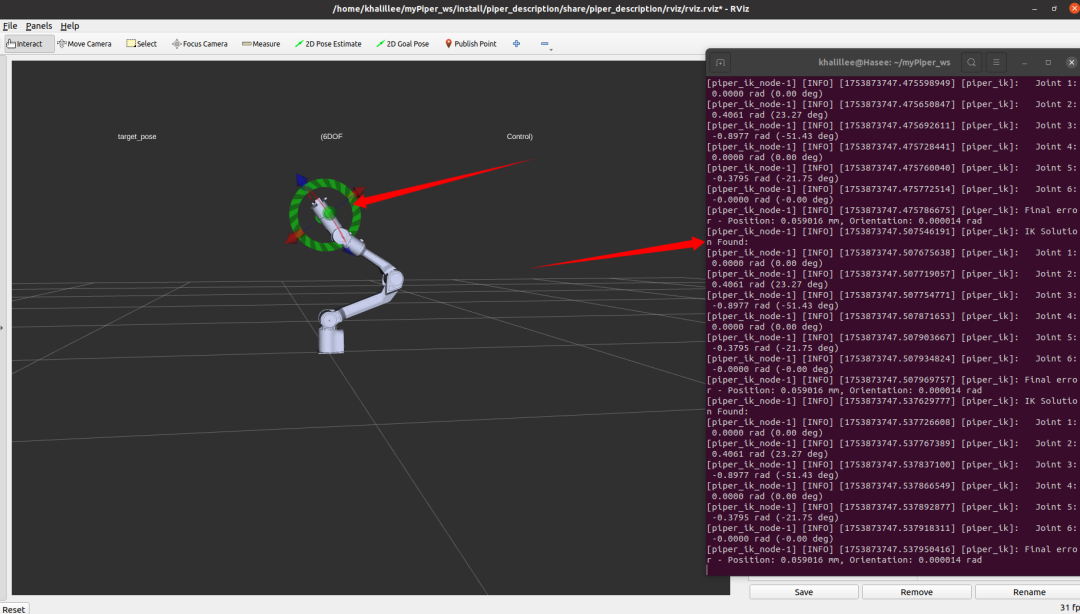 1. 4. 拖动interactive_marker并观察PIPER机械臂运动情况
