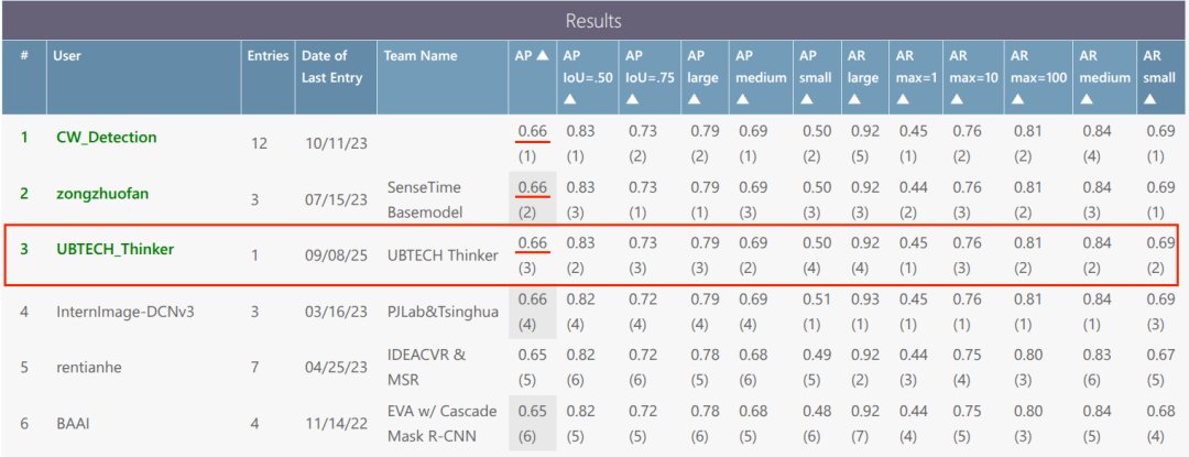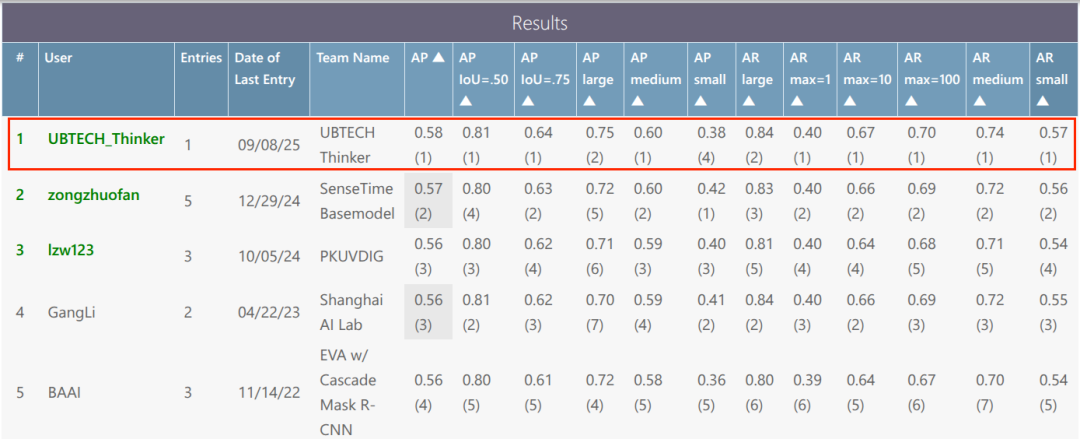 MS COCO detection challenge由微软发起,是计算机视觉领域的权威评测基准之一,在全球学术界与工业界享有极高认可度,常年被众多顶尖论文与技术报告用作感知算法性能的衡量标准。