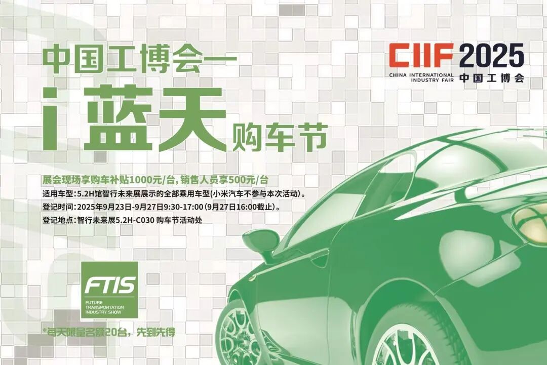 智行未来展将在9月23-27日中国工博会期间举办第六届“中国工博会—i蓝天购车节”。