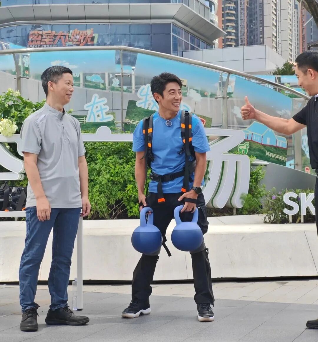 撒老师这边也没闲着:试外骨骼、拎壶铃、跟各类机器人热情互动……整个人就是“科技迷弟”,综艺感直接拉满。