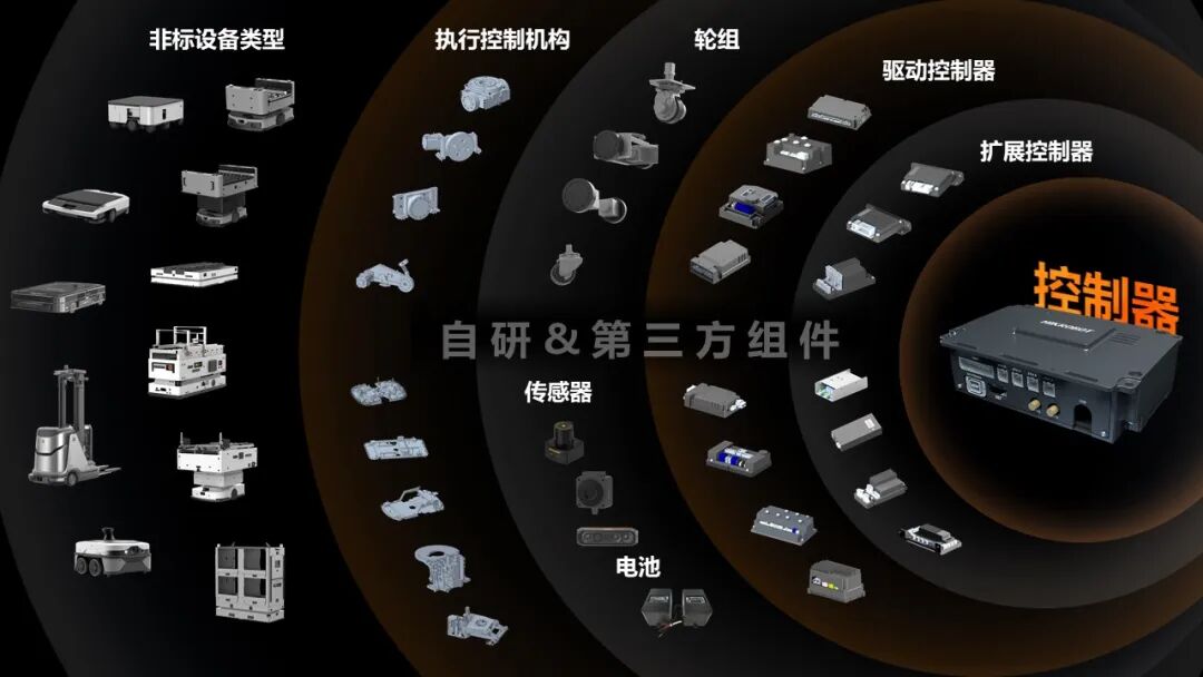 本次发布的海康机器人控制器集成套件是一个稳定、开放的控制开发平台,集成海康机器人在导航、运动控制及多种工业通信协议方面的技术积累,旨在帮助助力生态伙伴高效开发各类非标准移动机器人车型,应对多样化场景需求。