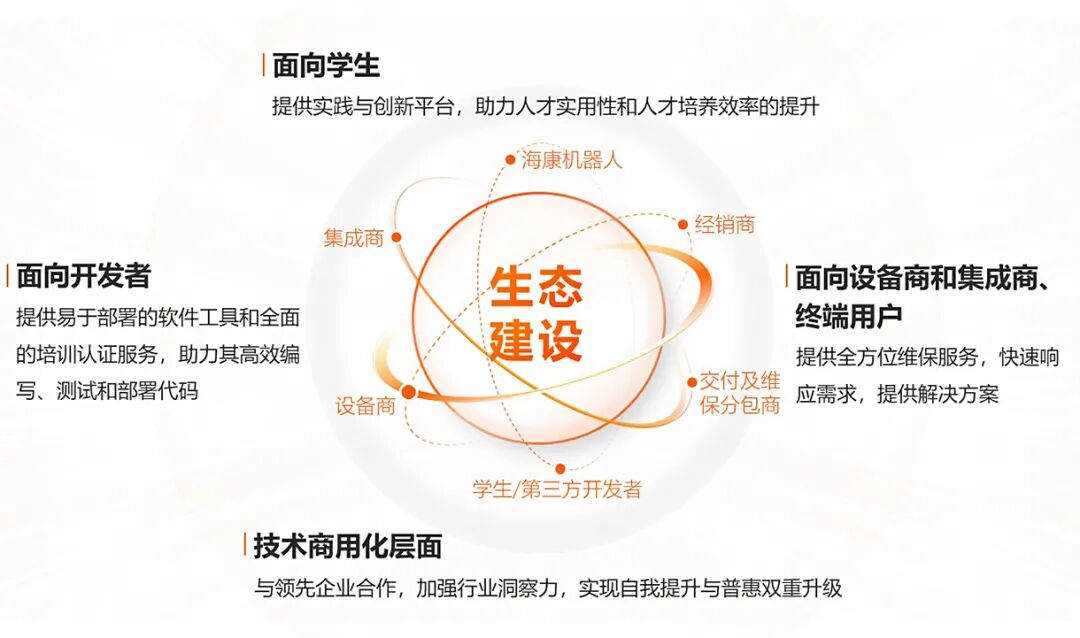 一直以来,海康机器人积极携手开发者、设备商、集成商、终端用户、高校、分包商等多方力量,打造出“产学研用”协同发展的产业模式。2024年4月海康机器人生态合作伙伴数量已达200+家。伙伴们的成长与生态的壮大,离不开技术能力的共享机制。