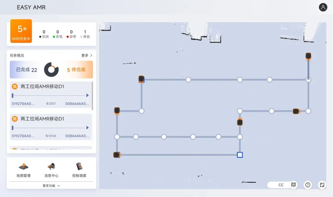 EasyAMR是一套通过软硬件深度集成,实现的“开箱即用”的移动机器人系统产品。该系统搭配轻便PAD终端,支持一键组网、实时建图、路径自动生成与远程运维。