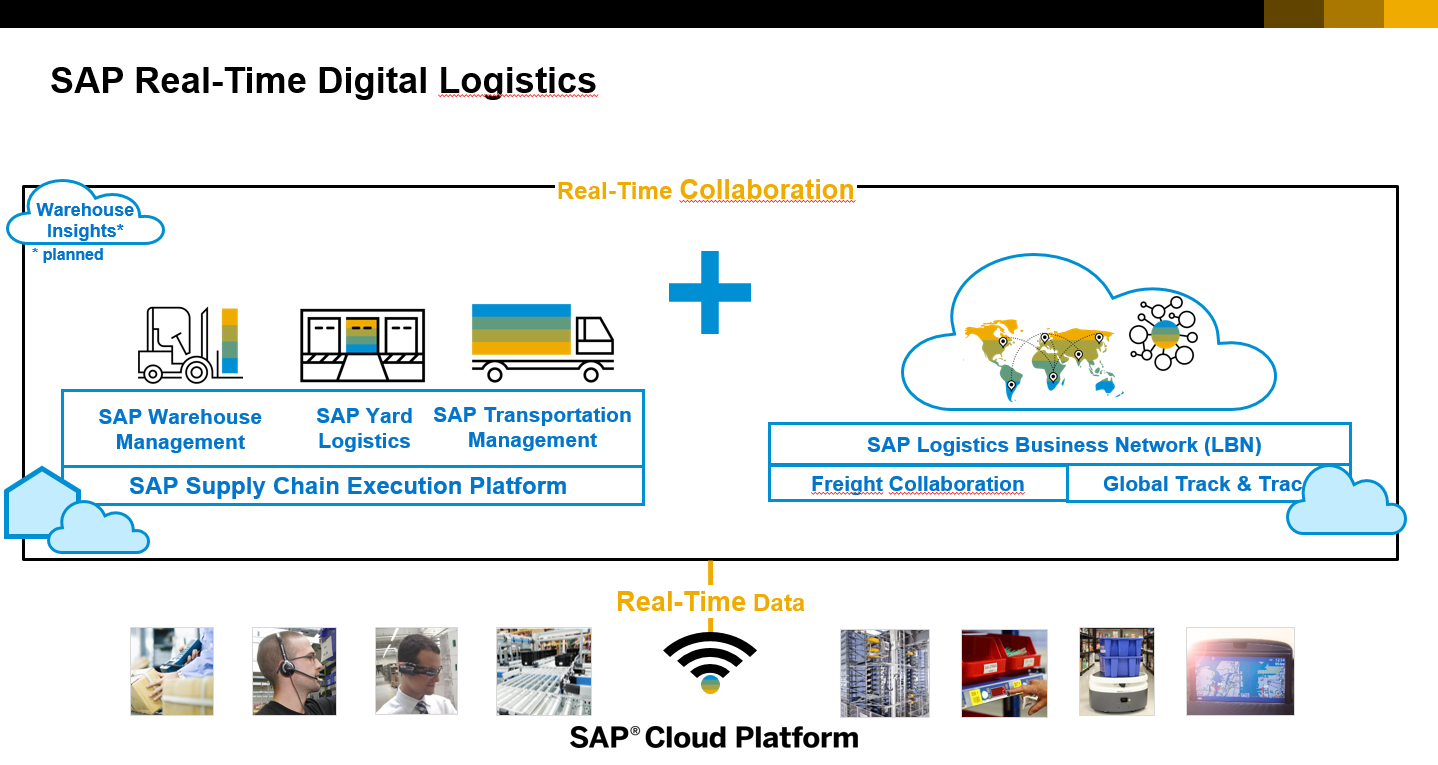 网络协作(Network Collaboration):通过 SAP Business Network for Logistics,将仓库、承运商以及上下游合作伙伴在同一平台联通,以共享库存、运输时效、发货状态等信息,实现协同与透明化。
